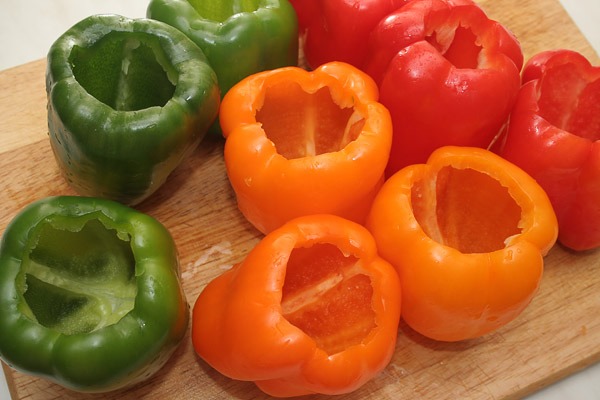 - Připravte zeleninu - opláchněte, odstraňte stopky se semeny.