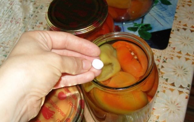 - Vypusťte solanku, nechte ji znovu vařit. Přidejte do nádoby aspirin. Nalijte solný roztok a svinujte konzervy.