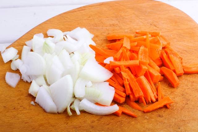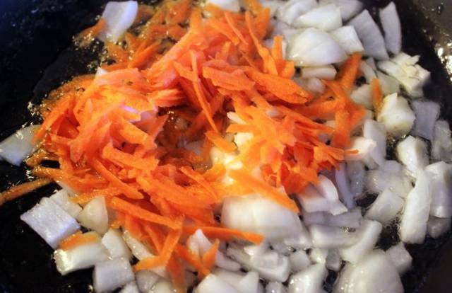 Smažte mrkev a cibuli zvlášť