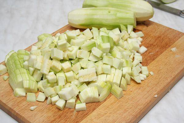 Umyté a sušené cukety se oloupou, nakrájejí na kousky.