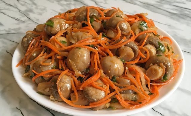 - Pro ty, kteří milují orientální kuchyni, existuje recept na přípravu žampionů na zimu v korejštině. To vyžaduje vhodné koření, pálivé koření, sójovou omáčku.