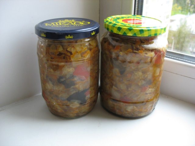 Opatrně vyjímejte plechovky jednu po druhé a pevně srolovat. Polotovary na zimu lze použít za 3-5 dní.