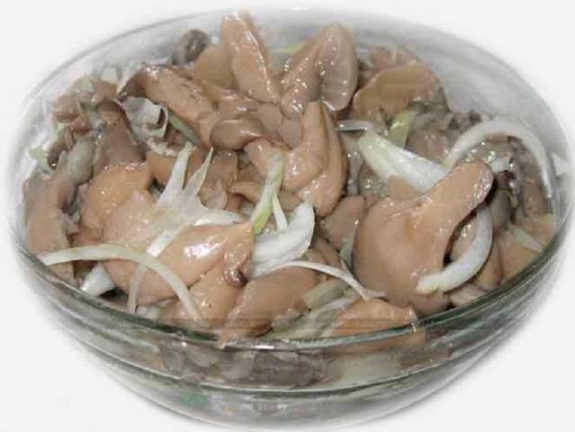 V okamžiku, kdy se houby stále vaří, nakrájejte červenou cibuli na proužky, nasekejte česnek. A bílá cibule je smažená do zlatova. Všechny konzervované komponenty jsou kombinovány s houbami, přidá se požadované množství octa a odešle se do chladničky po dobu 10 hodin. Po této době jsou hlíva ústřičná připravena ozdobit váš stůl. Zde je takový jednoduchý recept s fotkou hotového jídla.
