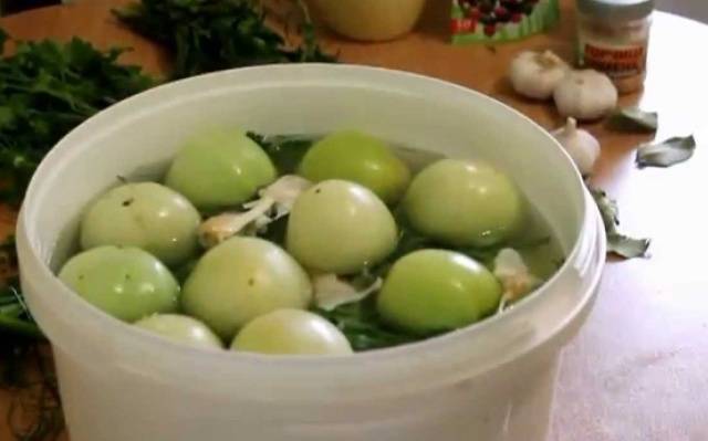 Tento recept zahrnuje studené moření rajčat. Bude to trvat velmi málo času, a co je nejdůležitější, udrží si většinu živin. Zelení a další přísady dodají zeleným plodům lahodnou chuť a vůni.
