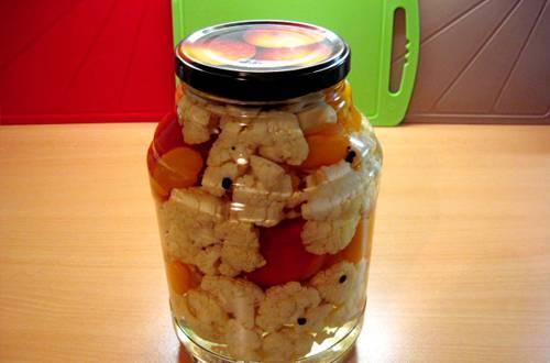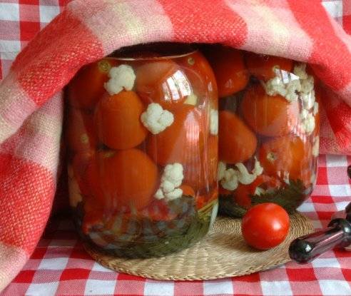 Chuť rajčat s květákem marinovaným na zimu překvapí i náročné gurmány. Hlavní podmínkou je výběr zralé zeleniny. Květák by měl mít husté pupeny a barvu, která odpovídá odrůdě. Pařezy zelí musí být vyříznuty. Stačí se podívat, jak lahodně vypadá sklenice nakládané zeleniny!