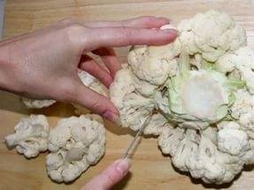 - Nalijte čistou vodu (1 litr) do hrnce a přidejte dvě lžíce octa. Když voda zovře, přidejte zelí, květenství a vařte 15 minut. K vaření karfiolu nepoužívejte hliníkové nádobí, protože jeho látky reagují s kovem.