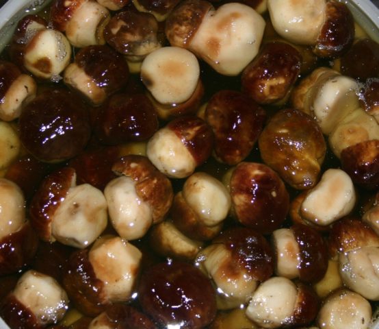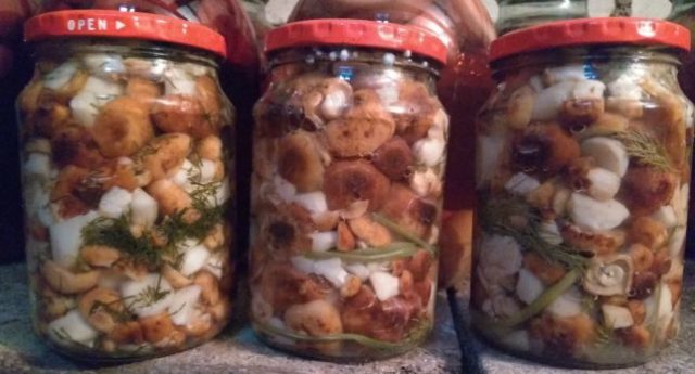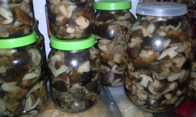 Při dodržení všech pravidel jsou houby rozloženy do sterilizovaných skleněných nádob, těsně uzavřeny a uchovávány na chladném místě, pak bude výrobek vhodný po dobu jednoho roku.