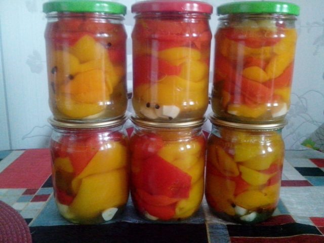 Bulharský pepř marinovaný v nádobách o objemu 0,5 litru s kyselinou citronovou se vyrábí podle jakéhokoli receptu se sterilizací nebo bez vaření v nádobách. Pokud dojde k dalšímu tepelnému ošetření, stačí 15 minut. Tento objem kontejneru půjde: