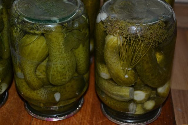 Okurky jsou uzavřeny nylonovými víčky a vloženy do komory. Bude to trvat 30 dní, než bude připraven, solný roztok bude zakalený. Okurky jsou křupavé, ostré a velmi chutné, skladují se 6-8 měsíců.