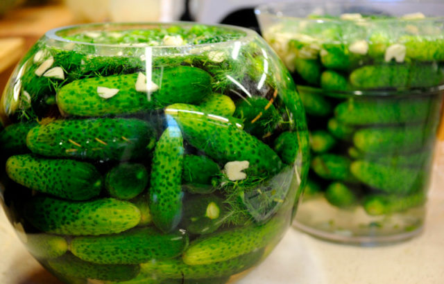 Pokud byly okurky na moření pěstovány ve vlastní zahradě a byly nedávno vytrženy ze zahrady, pak je lze namočit jen na hodinu. Skladujte zeleninu nejlépe namočenou po celý den. Po dlouhém zpracování explodují méně často, protože uvolňují veškerý vzduch, jsou nasyceny vlhkostí a škodlivé látky opouštějí okurkovou dužinu.