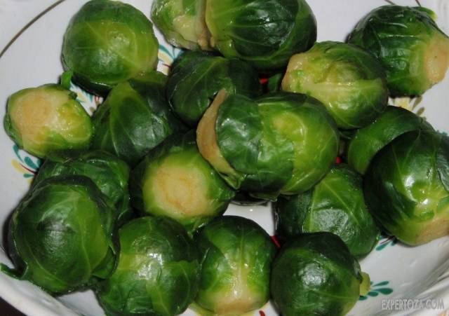 - Rozetřete růžičkovou kapustu do vroucí osolené vody a vařte do měkka (hlavy by měly měknout).