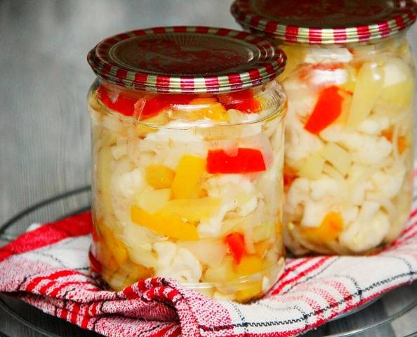 Charakteristickým rysem tohoto receptu je rychlost vaření. Do jednoho dne lze obrobek sníst, je-li to nutné, lze jej také snadno skladovat zalitím do sklenic. Jak je známo, květák několikanásobně užitečnější než obyčejné bílé zelí, takže je nutné na vzorek naložit alespoň pár sklenic.