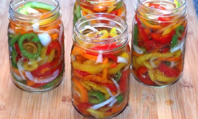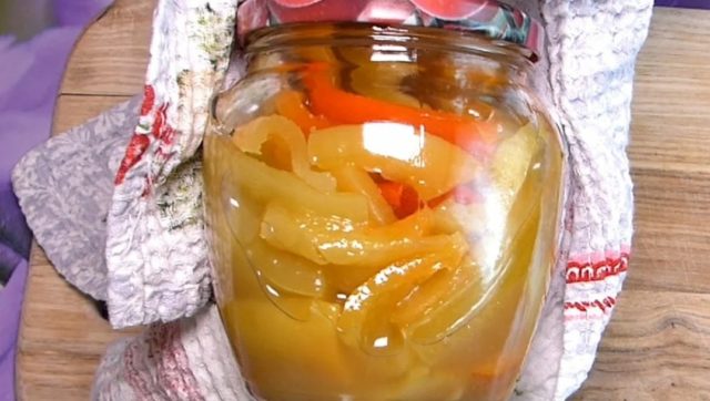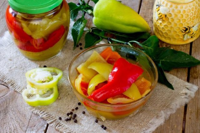 Papriku v medové náplni na zimu lze připravit podle níže popsaného receptu. V tomto případě stojí za to připravit rafinovaný rostlinný olej bez zápachu (slunečnicový nebo olivový olej druhého lisování).