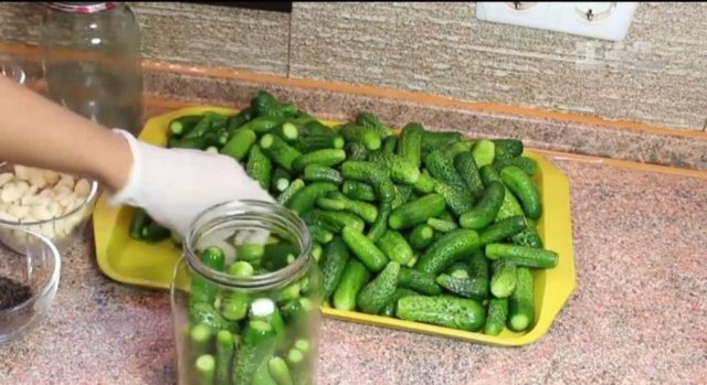 Okurky mohou mít jakoukoli velikost, ale je lepší vzít malé zelené, z nichž se do litrové nádoby vejde 8-10 kusů. S kořením nemusíte být horliví - příprava bude stejně voňavá.