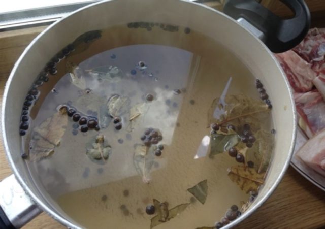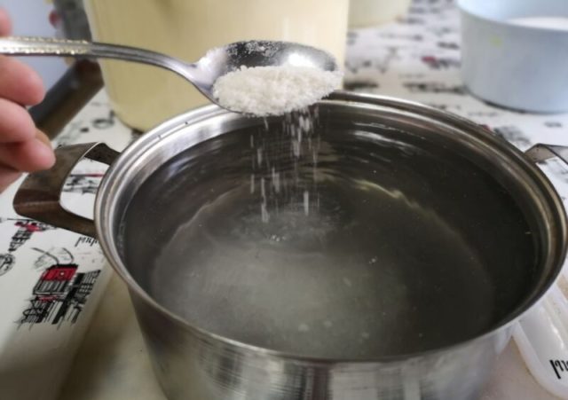 - Vypusťte kapalinu do čisté pánve. Hořte, přidejte cukr a sůl. Nechte to vařit.