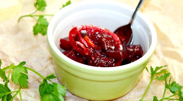 Recept na lahodnou marinádu z červené řepy na zimu s cibulí a paprikou