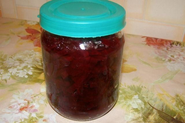 - Pokud je nutné konzervovat řepnou marinádu na zimu, pak se nádoby s ní sterilizují ve vroucí vodě nebo v troubě asi čtvrt hodiny.