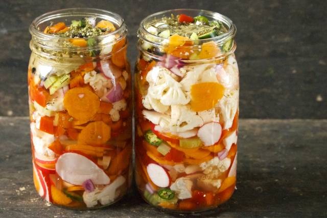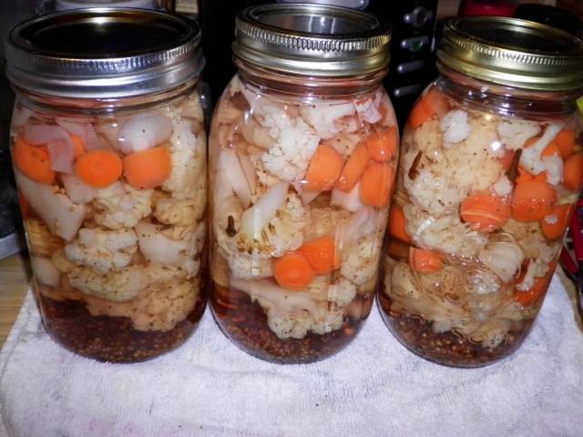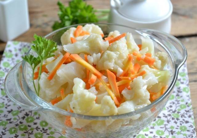 Moření květáku na zimu ve sklenicích nastává při použití různých druhů zeleniny a ovoce. Obvykle se používá mrkev, paprika, řepa, brokolice. Proces moření zahrnuje solanku, která se připravuje na bázi horké vody, soli, octa a granulovaného cukru.