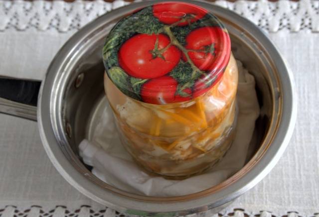 - Marinujte zeleninu ve sterilizované nádobě s horkou marinádou.