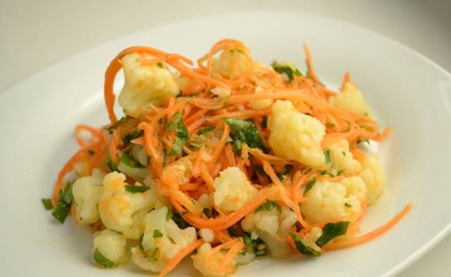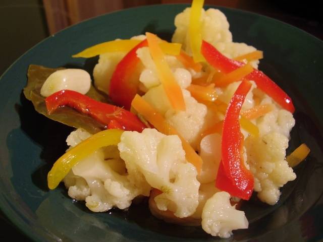 Nakládaný květák pohodlným a rychlým způsobem. Tento recept používá mrkev a několik dalších ingrediencí pro marinádu.