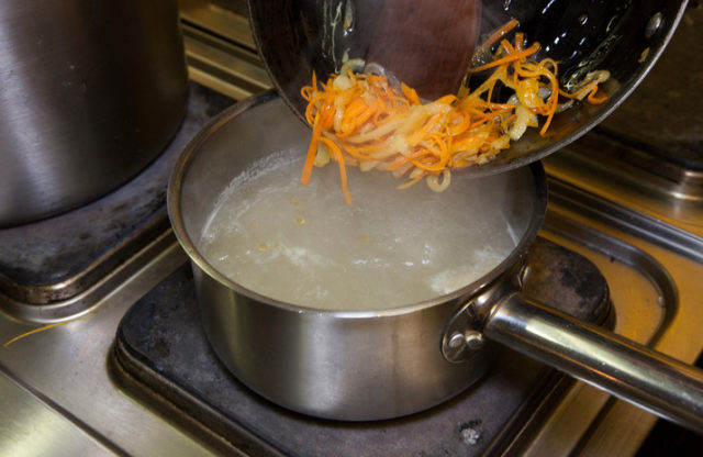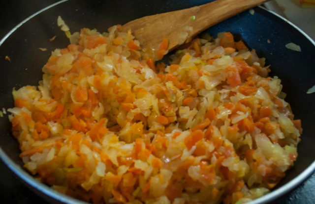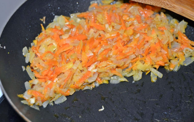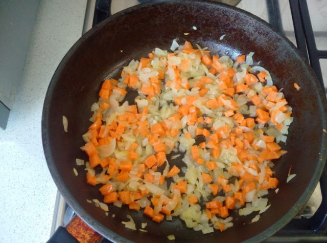- Smažte nakrájenou cibuli a mrkev dozlatova.