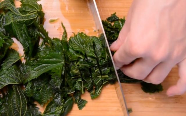 - Nakrájejte kopřivy a přidejte do hrnce.