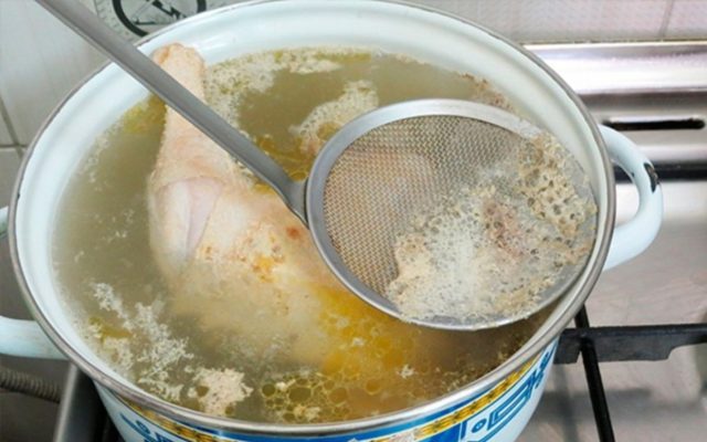 - Odstraňte pěnu z vroucího vývaru, dochuťte solí.