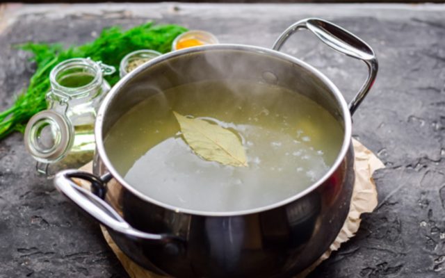 - Na oheň dejte pánev s masem a vodou, abyste získali vývar, vařte do měkka.