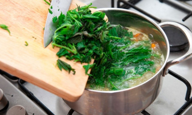 Kopřiva nemá výraznou chuť, proto pro vaření zelné polévky musí být kombinována s dalšími složkami. Díky tomu bude pokrm vyvážený a zdravý. Je nutné zakrýt listy a výhonky rostliny za 2-5 minut. před koncem vaření.