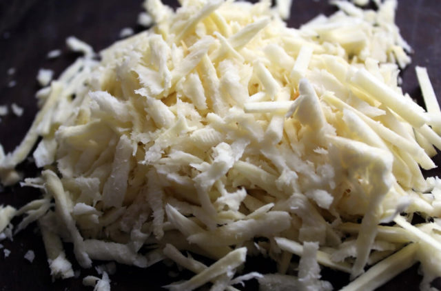 - Nastrouhejte kořen pastináka, přidejte do kastrolu.