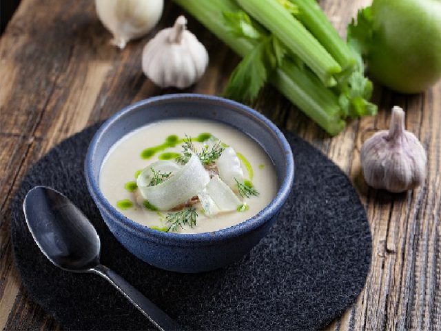 Krémová celerová polévka na hubnutí připravená podle receptu má jemnou strukturu. Produkt může mít mezi oblíbenými recepty hostesky slušné místo.