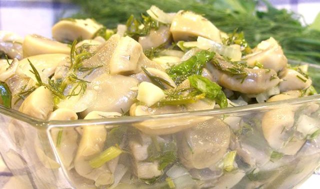 Aby se zabránilo dlouhodobému namáčení, jsou houby zbledlé. Za tímto účelem se vaří 20 minut, poté se promyjí studenou vodou a znovu se vaří 15 minut, poté se znovu promyjí. Na dno nádoby se nalije sůl, česnek, bobkový a rybízový list, kopr. Houby jsou položeny ve vrstvách, posypané solí, náklad je umístěn na horní části kruhu. Po dobu 7 dnů se umístí do chladničky, poté se rozloží do sklenic a hermeticky se uzavřou. Produkt je připraven k použití za měsíc. Sortiment lze podávat s cibulí a rostlinným olejem.