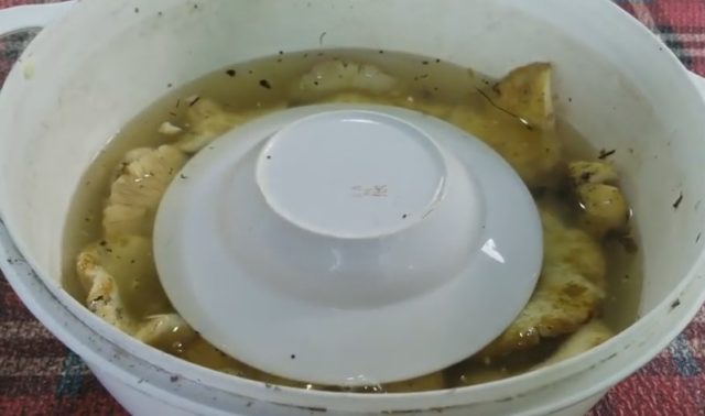 - Houby ponořte do vody a několik dní namočte. Vyměňte kapalinu 2-3krát denně. To je nezbytné k odstranění hořké chuti.
