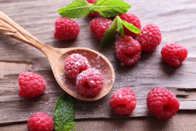 - Maliny jsou posypané cukrem a ponechány, dokud se šťáva nevrátí.