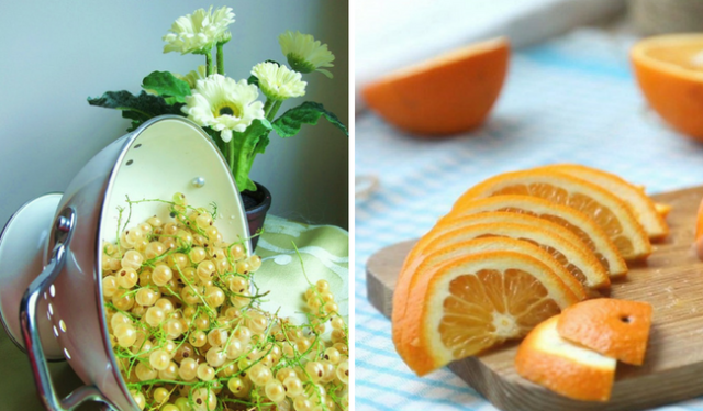 - Rybíz a pomeranče musí být důkladně umyty, sušeny, nakrájeny na malé plátky.