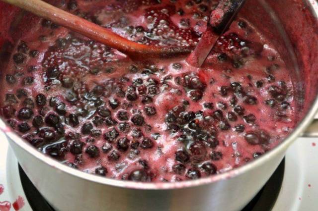 - Když začne vařit, zaznamená se čas a vaří se 30 minut a bobule se míchají špachtlí, aby se nespálily.