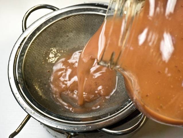 Sceďte mladinu, vymačkejte dužinu, nalijte do skleněných lahví a naplňte je 3/4 objemu.