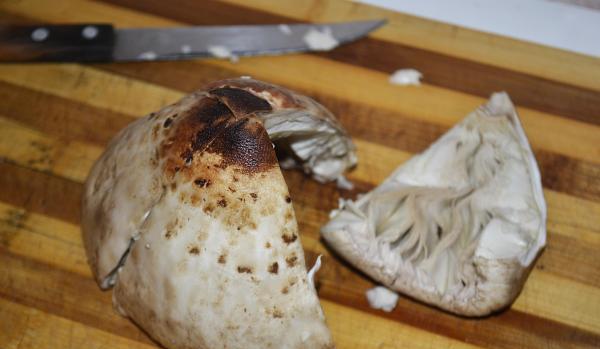 - Rozdělte houby. Sundejte nohy. Nejsou vhodné k vaření. Odstraňte tvrdé šupiny z víčka. Velké nakrájejte na kousky. Pokud jsou plody malé, je lepší nechat je celé.