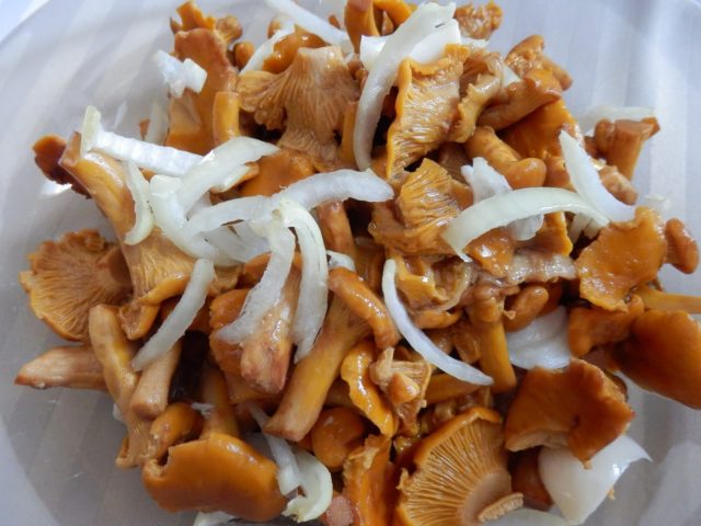 - Houby lišek se smaží s cibulkou dalších 10 minut.