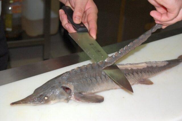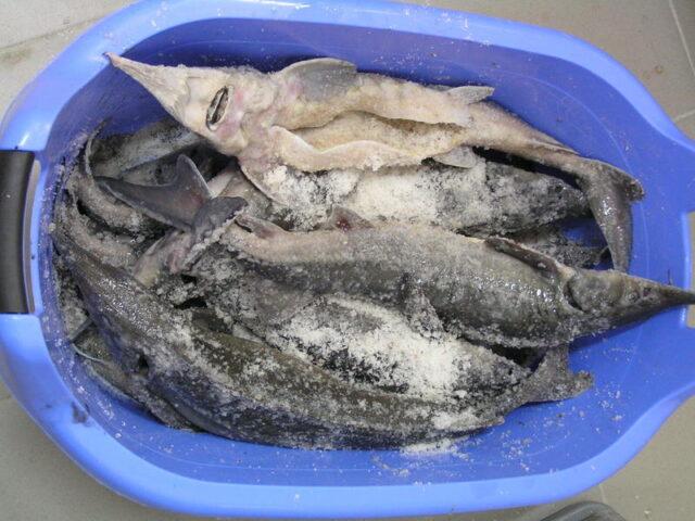Před mořením se jeseter očistí od soli a omyje se teplou vodou