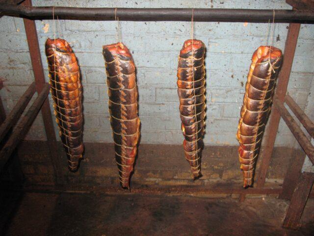 Po studeném kouření jsou jatečně upravená těla větrána. Jsou zavěšeni po dobu 8-10 hodin na místě chráněném před sluncem.