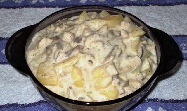 Brambory s houbami, které se trápí pod jemnou zakysanou smetanovou omáčkou, nenechají nikoho lhostejným. Guláš se ukáže být šťavnatý, něžný, dokonale upečený.
