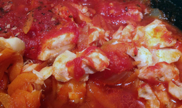 - Posypeme pepřem. Směs. Ztmavte, dokud se vaří na mírném ohni.