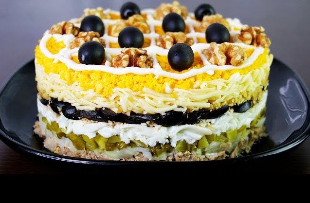 Tento lahodný salát si získal popularitu mezi labužníky. Tento předkrm na maso osloví zejména milovníky vydatného jídla.