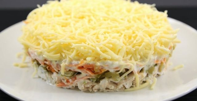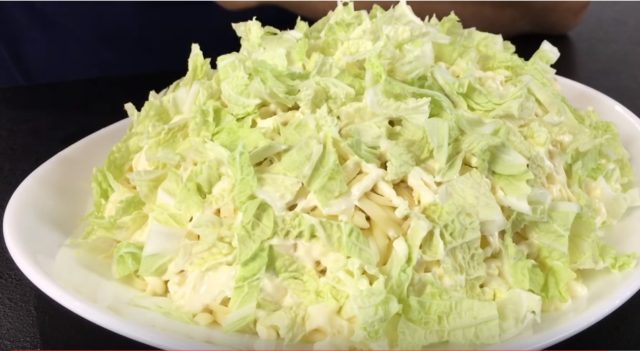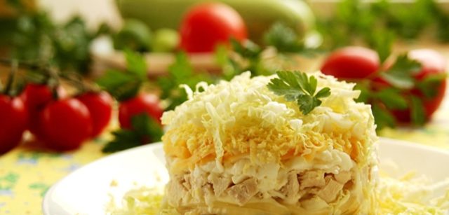 Existuje mnoho variant receptů na toto lahodné jídlo. Nejčastěji zahrnuje vydatné a zdravé potraviny, jako je vařené maso, zelenina, kořenová zelenina a sušené ovoce. Hlavní ingrediencí je čínské zelí. Tento produkt sytí salát užitečnými látkami a dodává mu neobvyklou lehkou chuť. Každý hotový recept lze diverzifikovat konzervovanými potravinami: hrášek, fazole, ananas.