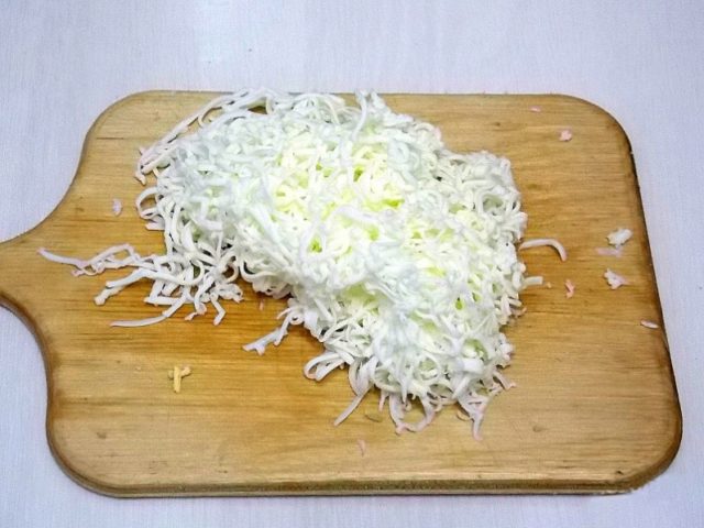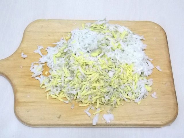 - Slepičí vejce se vaří natvrdo, ochladí se a oloupou. Poté, co se třou na struhadle.