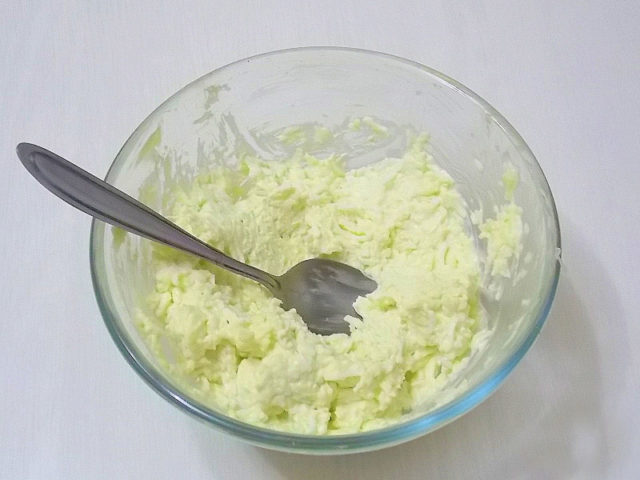 - Nakrájená vejce, sýr a česnek se smíchají s majonézou do hladka.