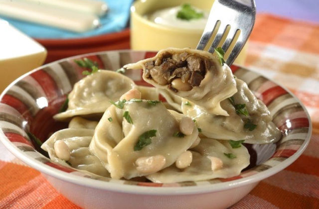 Podle technologie vaření je jídlo podobné knedlíkům, má pouze jiný tvar a několik druhů náplně. Chcete-li vyrobit polotovar, musíte vařit mleté maso, které zahrnuje houby a přísady podle osobních preferencí, a také hnětet těsto skládající se z vody, mouky a soli. Pokud je to požadováno, můžete do něj přidat vejce. Dále by z hotové měkké a plastické hmoty měly být vytvarovány malé knedlíky ve tvaru půlměsíce a vařeny v mírně osolené vodě. Můžete si vařit knedlíky s mléčnými houbami pro budoucí použití a užívat si jejich aromatickou šťavnatou chuť po celou zimu. K tomu stačí do mrazničky vložit surové obrobky a před použitím je uvařit. Můžete podávat hotové občerstvení s máslem, zakysanou smetanou nebo omáčkou.