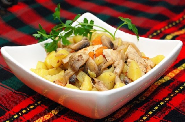 Recept na hlívu ústřičnou s kuřecím masem a bramborami