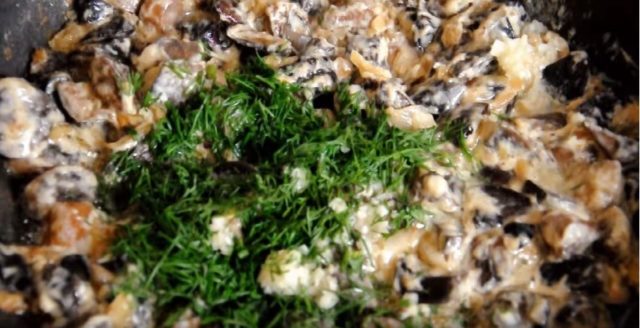 - Chvíli dusíme pod pokličkou. Poté se odstraní, aby se kapalina uvolněná z nich během tepelného zpracování mohla odpařit.